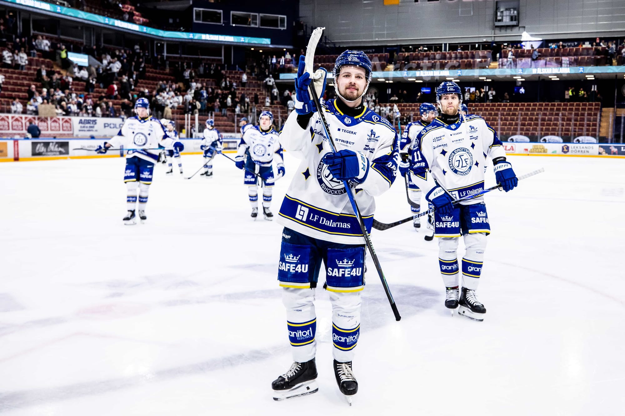 Viktig match i Tegera Arena under dagen alltså, minst sagt. Återstår att se om publiken sluter upp bakom Leksand idag. Landets mest populära ishockeyklubb har på sistone spelat inför halvtomma läktare. Många hejar på Leksand, men de flesta bor en liten bit från den lilla orten i Dalarna. Därför, många hejar i sofforna, men relativt få på plats. Det förefaller som att de boende på orten kanske är lite trötta på allt stök kring klubben på senare år.
