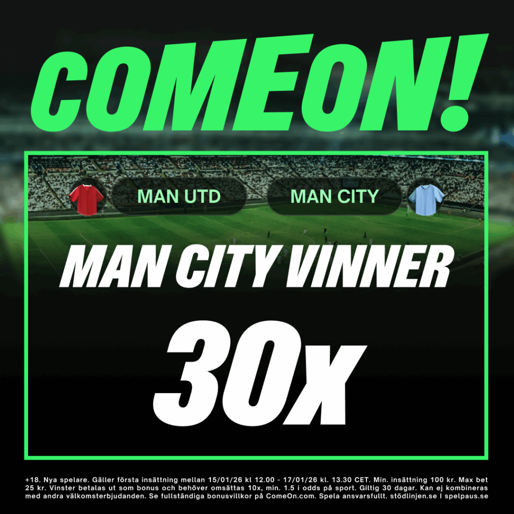 Speltips: Manchester City vinna derbyt – boostat till 30x (17/1)
